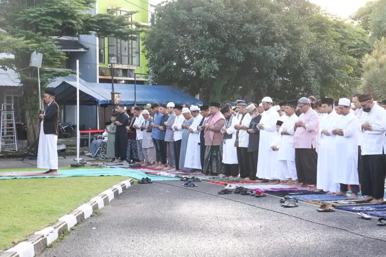 Bogor - Gema takbir berkumandang di Lapangan Taman Boulevard Cimanggu, Kecamatan Tanah Sareal. Taman yang biasanya hiruk pikuk sebagai pusat kuliner, berubah menjadi tempat pelaksanaan Solat Idul Adha 1444 Hijriah, Kamis (29/6).
