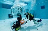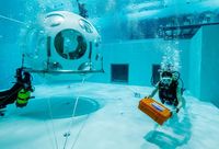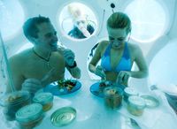Nicolas Mouchart dan istrinya Florence menuturkan pengalamannya. Sebelum makan mereka harus memakai baju selam. Setelah menyelam mereka menuju tempat makan berupa tabung bundar mirip helm astronot dengan lebar 2 meter. Kolam renang ini cukup dalam karena dirancang untuk tempat berlatih para scuba diver. Sampai di dalam tabung pengunjung harus melepaskan dulu semua pakaian selam, menggantungkannya baru kemudian masuk untuk memesan makanan. Pesanan Anda akan diantarkan penyelam dalam kotak tahan air. Setelah mengantarkan makanan, penyelam akan pergi dan membiarkan pengunjung makan dalam ketenangan bawah air.