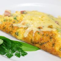 Panaskan mentega dalam wajan anti lengket memakai api sedang. Masukkan 1 bagian isi, aduk sampai bawang bombay mulai bening. Tuang 1 bagian adonan telur ke dalamnya. Aduk sambil dikumpulkan ke salah satu sisi wajan. Lalu bentuk adonan telur jadi gulungan omelet yang menyatu. Kecilkan api, masak hingga bagian tengah matang.
