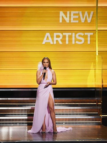 Sebagai presenter di Grammy Awards 2017, J-Lo terlihat menakjubkan dalam balutan gaun koleksi musim semi 2017 Ralph and Russo berwarna lavender yang manis dengan plunging neckline atau belahan dada yang rendah. Gaun itu juga hadir dengan belahan rok tinggi yang memamerkan kaki J-Lo yang seksi. Gaunnya itu ia padankan dengan sepatu heels dan clutch bertabur berlian.