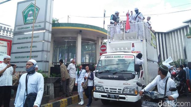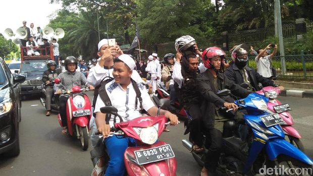 Pantauan detikcom di Masjid Istiqlal, Jakarta, selepas salat Jumat, massa yang mengenakan baju berwarna putih langsung menuju parkiran masjid. Massa mulai bergerak sekitar pukul 13.00 WIB.