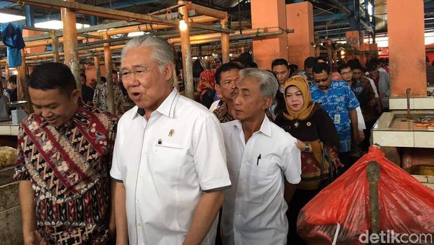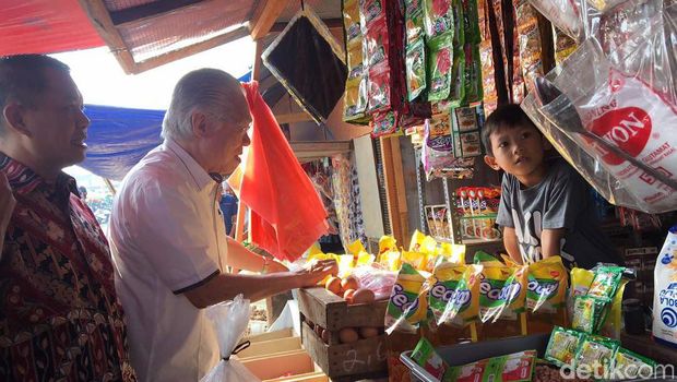 METROPOLITAN - Jelang Lebaran, Menteri Perdagangan (Mendag), Enggartiasto Lukita, pagi ini menyambangi Pasar Baru di Jalan Wahid Hasyim, Kota Cilegon, Provinsi Banten. Mendag yang mengenakan setelah kemeja putih ini tiba pukul 09.00 WIB sampai ke pasar dan langsung mendatangi toko penjual sembako. "Gula berapa ini?" tanya Enggar dengan nada menyelidik sambil mengambil salah satu bungkusan gula pasir kemasan 1 kg. "Rp 13.000 Pak. Harganya segitu," jawab sang pedagang.