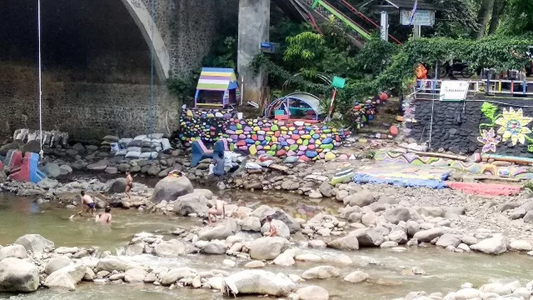 Bogor – Kolong Jembatan Sempur yang dulunya terlihat kumuh kini di sulap oleh tangan beberapa warga kreatif, menjadi tempat bermain air anak dan dinding pembatas air di cat ber-aneka warna-warni dengan dihiasi beberapa motif gambar bunga.