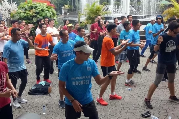 METROPOLITAN - Wakil Gubernur DKI Jakarta Sandiaga Uno melakukan lari pagi dan senam Poco-poco bersama finalis Abang-None se-Jakarta. Sandiaga bersama Abang-None berolahraga bersama di kompleks Balai Kota.