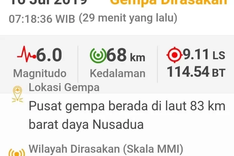 METROPOLITAN.id - Gempabumi tektonik berkekuatan 6,0 skala richter (SR) yang mengguncang Kabupaten Jembrana, Bali, Selasa (16/7) sekitar pukul 07.18 WIB. Meski gempa ini terasa hingga Lombok dan Jember dan merusak sejumlah rumah warga, Badan Meteorologi, Klimatologi dan Geofisika (BMKG) menyebut gempat ini tak berpotensi menyebabkan tsunami. Kepala Pusat Gempabumi dan Tsunami BMKG, Rahmat Triyono mengatakan, gempabumi berkedalaman menengah ini diakibatkan oleh aktivitas subduksi Lempeng Indo-Australia yang menyusup ke bawah Lempang Eurasia. Hasil analisis mekanisme sumber menunjukkan bahwa gempabumi ini dibangkitkan oleh deformasi batuan dengan mekanisme pergerakan jenis naik mendatar. Menurtnya, guncangan gempabumi ini dirasakan di daerah Badung, Nusa Dua, Denpasar, Mataram, Lombok Tengah, Lombok Barat, Banyuwangi, Karangkates, Sumbawa, Lombok Timur, Lombok Utara, Jember hingga Lumajang. Hasil pemodelan menunjukkan bahwa gempabumi tidak berpotensi tsunami. BMKG juga mengimbau masyarakat tetap tenang dan tidak terpengaruh oleh isu yang tidak dapat dipertanggungjawabkan kebenarannya. “Agar menghindari dari bangunan yang retak atau rusak diakibatkan oleh gempa. Periksa dan pastikan bangunan tempat tinggal anda cukup tahan gempa, ataupun tidak ada kerusakan akibat getaran gempa yg membahayakan kestabilan bangunan sebelum anda kembali kedalam rumah” ujar Rahmat. (ogi/fin)