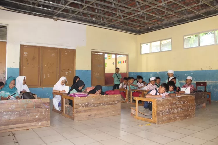 Muid SDN Kertajaya 02 Rumpin belajar di lantai dan menggunakan meja rusak sebelum mendapat bantuan
