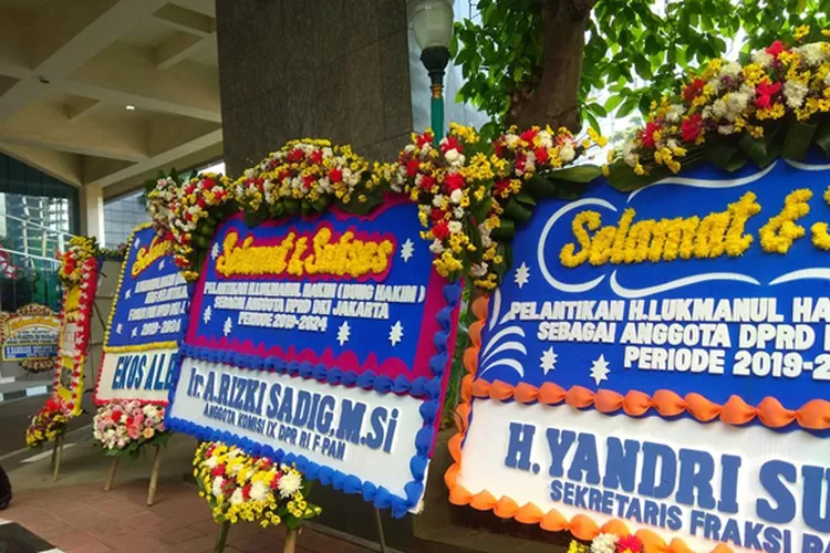 METROPOLITAN - DPRD DKI Jakarta akan segera menggelar pelantikan 106 anggota baru. Sejumlah karangan bunga memenuhi halaman Gedung DPRD DKI Jakarta.