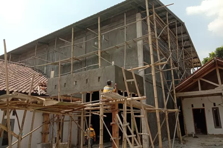METROPOLITAN - Menggunakan Dana Desa (DD) termin I, Anggaran Pendapatan dan Belana Negara (APBN) 2019, senilai kurang lebih Rp 300 juta, Pemerintah Desa (Pemdes) Bangunjaya kembali melanjutkan pembangunan gedung serba guna yang nantinya di pergunakan khusus untuk kepentingan madlsyarakat sekitar.