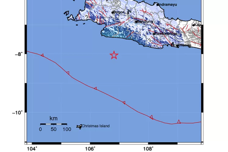 METROPOLITAN.id - Kabupaten Sukabumi diguncang gempa Magnitudo, Kamis (26/12) pukul 14.22. Gempa berada di 121 kilometer tenggara Kabupaten Sukabumi dengan kedalaman 10 kilometer. Imformasi dari Badan Meteorologi, Klimatologi dan Geofisika (BMKG), gempa juga dirasakan hingga pangalengan dan Cimahi. "#Gempa Mag:5.0, 26-Des-19 14:22:07 WIB, Lok:8.05 LS, 106.82 BT (Pusat gempa berada di Laut 121 km Tenggara Kab. SUKABUMI), Kedalman:10 Km Dirasakan (MMI) III-IV Sukabumi, II Pangalengan, II Cimahi #BMKG," tulis BMKG lewat akun Twitternya @infoBMKG Hingga berita ini diturunkan, belum ada informasi kerusakan akibat gempa tersebut. (fin)