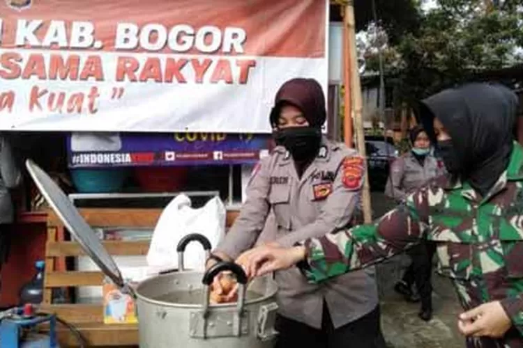 Sejumlah personel pasukan Korps Wanita Angkatan Darat (Kowad) Kodim 0621/Kabupaten Bogor bersama anggota Polisi Wanita (Polwan) Polres Bogor membuka dapur umum di Kampung Cicadas, Kecamatan Babakanmadang, Kabupaten Bogor. Kegiatan ini dilakukan untuk membantu warga di tengah Pembatasan Sosial Berskala Besar (PSBB). KASAT Binmas Polres Bogor, AKP Achmad Budi Santoso, menyebutkan, dari dapur umum itu mereka menghasilkan se­jumlah paket makanan yang kemudian dibagi-bagikan ke masyarakat sekitar. ”Hari ini (kemarin, red) kami telah men­distribusikan 500 nasi bungkus dan 50 masker kain kepada warga sekitar,” ujarnya. Kapolres Bogor, AKBP Roland Ronaldy, mengatakan, kegia­tan berupa dapur umum ini merupakan kegiatan rutin yang dilakukan Polres Bogor, Kodim 0621 dan jajaran Pemerintah Kabupaten (Pemkab) Bogor. ”Ini kegiatan rutin untuk mem­bantu masyarakat di tengah pelaksanaan PSBB,” katanya. Di samping itu, menurut Ro­land, ada 1.020 personel ga­bungan dari TNI-Polri dan Pemerintah Kabupaten (Pem­kab) Bogor yang terlibat peng­awasan PSBB di wilayah Ka­bupaten Bogor. ”Gabungan dari Polres Bogor, Kodim 0621/Kabupaten Bogor dan Pemkab Bogor itu totalnya 1.020 orang,” beber mantan penyidik di Ko­misi Pemberantasan Korupsi (KPK) itu.Menurut Roland, setiap personel disebar ke 55 titik pengawasan PSBB di ber­bagai sudut jalan raya Kabu­paten Bogor selama 24 jam dan dibagi tiga sif. Masing-masing sif diisi empat personel. Roland mengatakan, konsep pemberlakuan PSBB di Kabu­paten Bogor serupa dengan DKI Jakarta dan daerah lain di Jawa Barat yang turut mene­rapkan serentak. Salah satunya, penumpang angkutan hanya boleh 50 persen dari kapasitas angkutan. (mul/c/els/py)