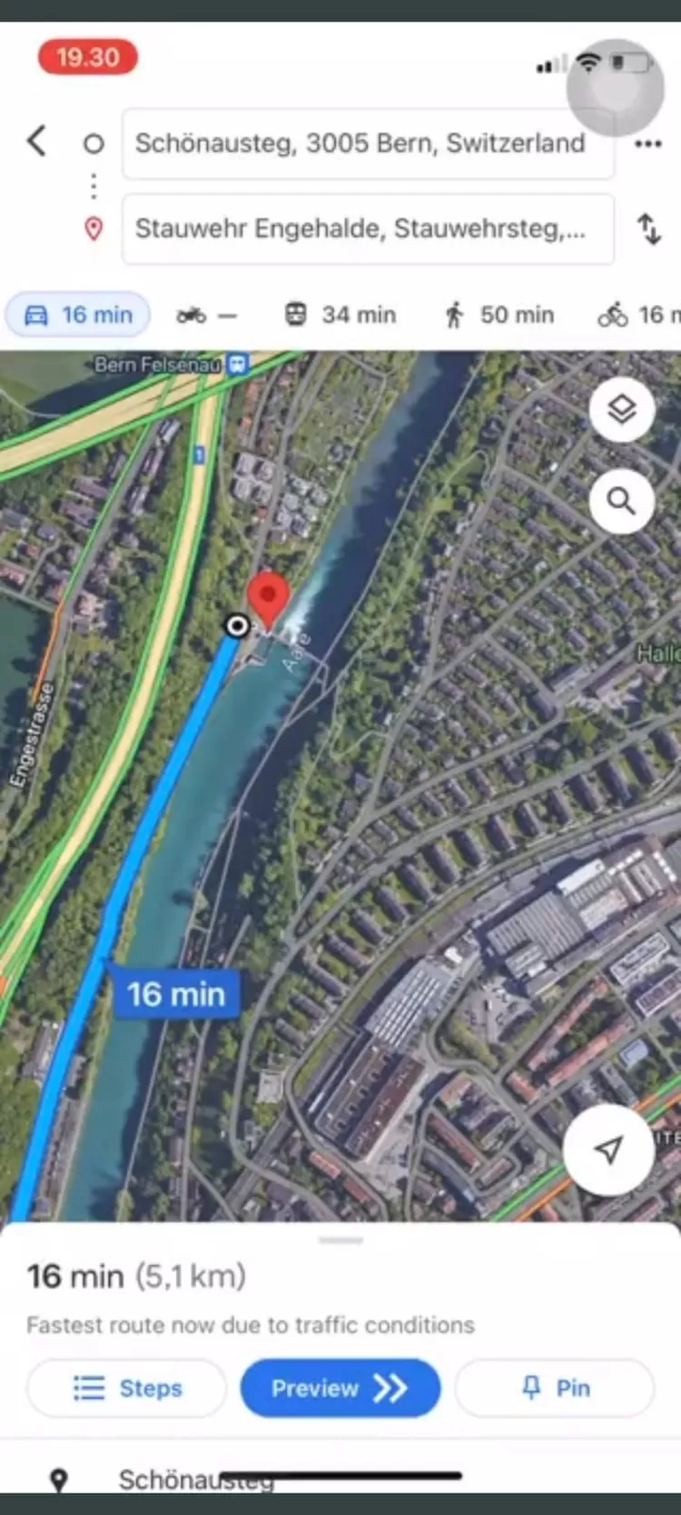 Lokasi dari penemuan dari tempat hilangnya Eril pada 26 Mei 2022 lalu ke Bendung Engehalde disebut berjarak sekitar 5,1 kilometer jika melihat googlemaps.