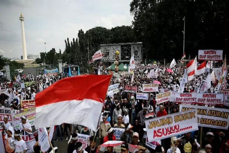 Di depan gerbang Istana Merdeka pada Senin (2/4) pukul 13:00 WIB, sejumlah peserta aksi membawa spanduk bertuliskan tuntutan mereka untuk pemerintah. Sementara itu, beberapa dari mereka juga menaiki sebuah mobil pikap untuk menyampaikan orasinya.