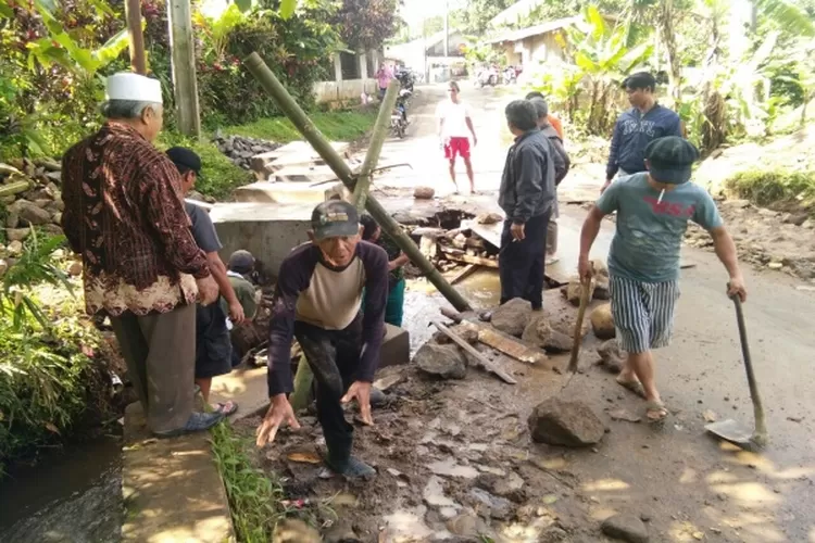 Cijeruk- Belum diperbaikinya jalan yang ambles di Kampung Babakan, Desa Cibalung, Kecamatan Cijeruk sejak empat bulan lalu membuat warga bergotong royong memperbaiki jalan yang ambles dengan memasang pipa beton. Pipa beton hasil dari swadaya ini dipasang untuk memperlancar air sungai yang tertutup matrial tanah.