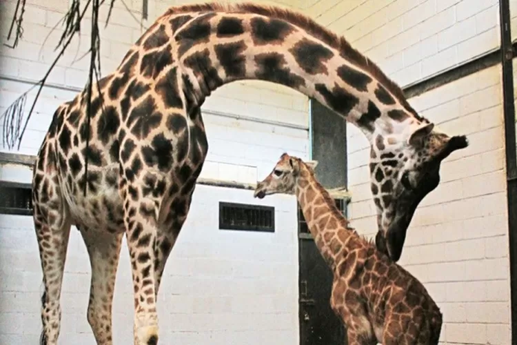 Dokter Hewan TSI, Ardyta Widianti, menjelaskan satwa asal Afrika tersebut lahir setelah melalui proses cukup lama. "Masa kehamilan selama 14 bulan lebih satu minggu," tuturnya. Kini, dalam usia empat hari, bayi jerapah sudah bisa berdiri secara perlahan. Sesekali, Emily dan si induk pejantan bernama Kalou menjilati tubuh sang anakan.