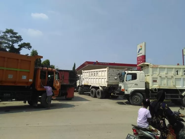 RUMPIN – Pasca harga Bahan Bakar Minyak (BBM) naik, belasan tronton pengangkut tambang nekat menutup jalan masuk antrean solar subsidi di SPBU Cicangkal Jalan Raya Pasar Cicangkal, Senin (2/18) pagi. Hal tersebut membuat pengedara lainnya geram lantaran tidak bisa masuk kedalam area SPBU.