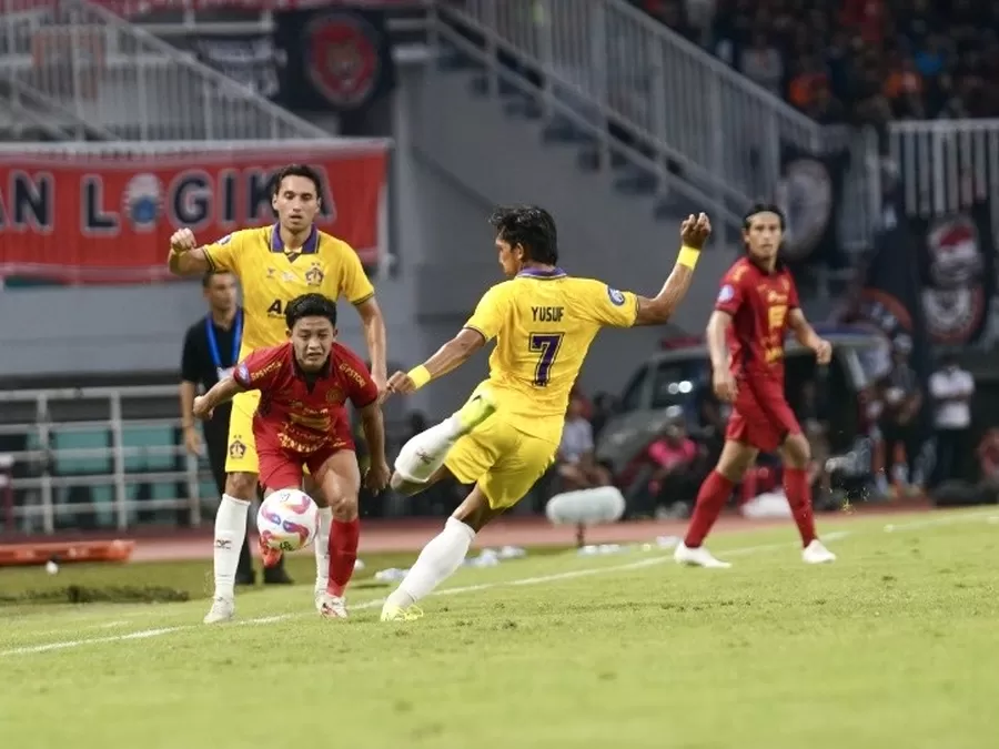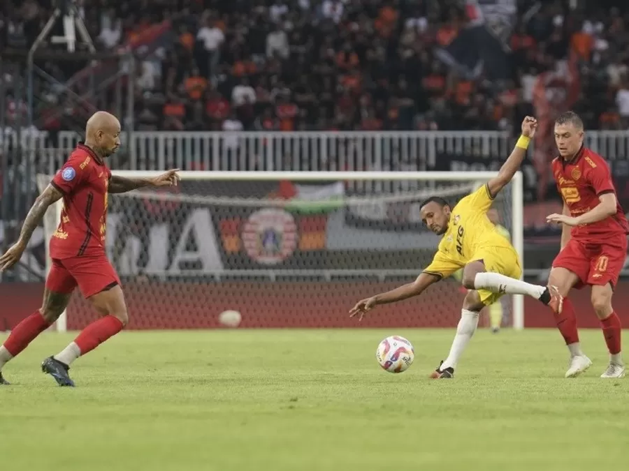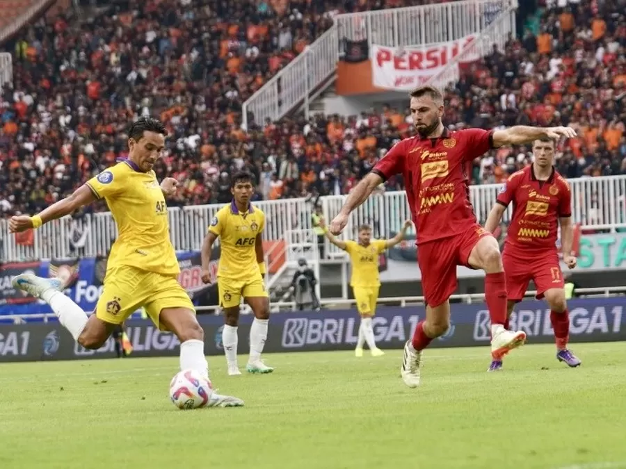 Persija menjamu Persik Kediri dalam laga lanjutan BRI Liga 1 2024-2025 di Stadion Pakansari Cibinong, Kabupaten Bogor, Minggu, 1 Desember 2024. Laga yang disaksikan ribuan The Jakmania itu dimenangkan Persija dengan skor akhir 2-0. (Arifin/Metropolitan)