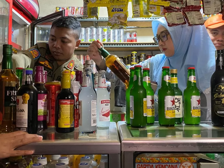 Satpol PP Kota Bogor dan Komisi 1 DPRD Kota Bogor melakukan razia minuman keras atau miras di beberapa titik di wilayah Kota Bogor, Jumat, 21 Februari 2025 malam.