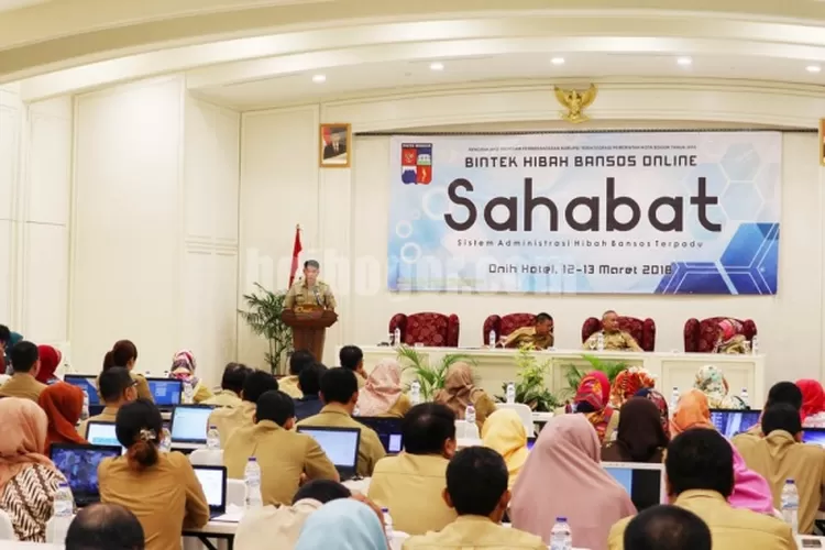 Pemerintah Kota (Pemkot) Bogor, melalui Bagian Administrasi Kesejahteraan Rakyat (Adkesra) Setda Kota Bogor, menggelar Bimbingan Teknis (Bimtek) Hibah Bantuan Sosial (Bansos) secara online dengan menggunakan Sistem Aplikasi Hibah Bansos Terpadu (Sahabat), di Hotel Onih, Jalan Paledang Kecamatan Bogor Tengah, 12-13 Maret 2018. Kegiatan dihadiri 200 Kepala Seksi (Kasi) Kemasyarakatan kecamatan dan kelurahan, serta Organisasi Perangkat Daerah (OPD) se-Kota Bogor.