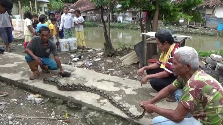 Penangkap ular, Urip menjelaskan, beberapa hari belakangan warga memang dibuat resah karena banyak hewan ternak ayam yang hilang mendadak. Terhitung, di bulan ini saja belasan ayam ternak hilang tanpa meninggalkan jejak. “Kan warga banyak yang membuat kandang dekat sungai. Belakangan banyak yang hilang, nah hari ini (kemarin, red) ketemu ular piton panjang, sepertinya habis makan ayam ini. Saat ditemukan, ular itu ada di lobang pinggiran sungai dan soalnya kekenyangan dan tidak banyak gerak,” katanya kepada Metropolitan, kemarin.