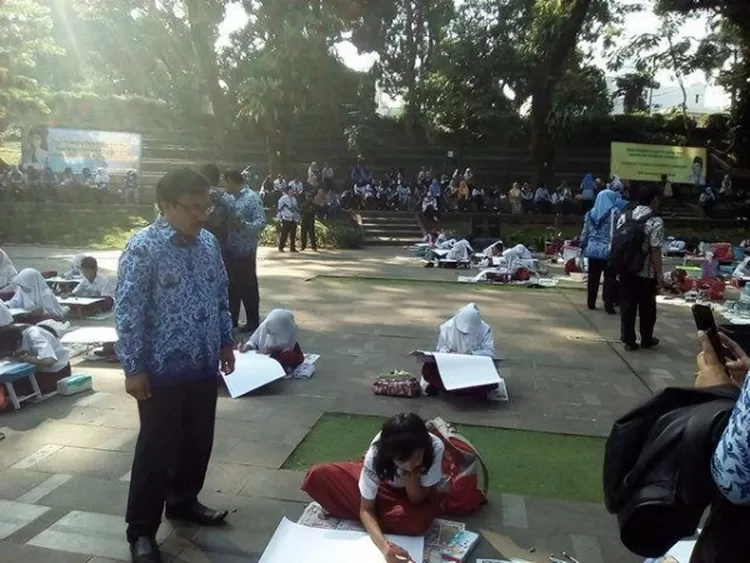 METROPOLITAN - Dalam rangka memperingati Hari Pendidikan Nasional (Hardiknas) 2018, Dinas Pendidikan Kota Bogor menghelat kegiatan pembinaan pekan kreativitas tingkat Sekolah Dasar. Kegiatan ini pun diisi dengan mengadakan lomba lukis, cipta puisi, dan membatik dengan tema menguatkan pendidikan, memajukan kebudayaan. Acara ini pun bertempat di taman ekspresi Kota Bogor.
