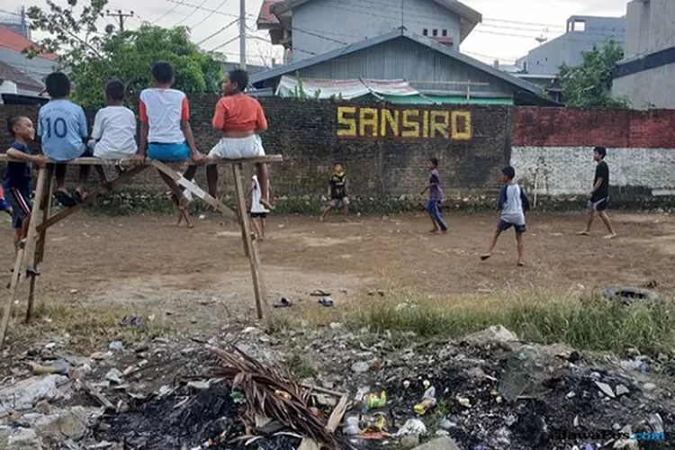 METROPOLITAN - Sejumlah anak-anak tanpa alas kaki bermain di ’Stadion’ San Siro. Bukan di Milan, namun di Makassar. Seperti apa? San Siro tempat bermain bola anak-anak tanpa alas kaki itu bukan stadion megah markas AC Milan. San Siro itu ditulis di atas dinding tembok bata merah. Dengan latar San Siro itu, sejumlah anak-anak tanpa alas alas kaki asyik menendang dan mengumpan bola. Lapangannya juga bukan rumput hijau, namun tanah becek bekas hujan. ’Stadion’ itu berada di gang sempit dengan dikelilingi tembok, dekat pembuangan sampah yang masih menyisakan ban bekas dan tumpukan ranting, serta tanah yang hampir gundul dengan rumput liar yang tumbuh berjarak. Di samping tulisan ’San Siro’, tergambar juga sebuah bendera merah putih di atas tembok. ’Stadion’ San Siro itu berada di salah satu sudut Makassar. ’Stadion’ itu diunggah oleh Instagram @pachesmindstore milik Muhammad Nurdin, yang kemudian menjadi perbincangan dunia setelah posting ulang oleh akun Instagram @433. Dalam keterangan di foto itu, bertuliskan ”San Siro, Indonesia”. Hingga kemarin, foto ini telah dilike hingga lebih dari 1 juta netizen. Ribuan warga net juga ikut mengomentari foto ini. Akun-akun dari Indonesia pun kebanyakan berkomentar soal nostalgia bermain bola di tanah sempit. ”Tidak peduli suara peluit, cuman suara adzan maghrib yang bisa menghentikan kami,” kata akun @localdiskd. Sementara itu, pada akun pribadinya, Nurdin menuliskan caption ”Bermainlah seakan-akan ditakdirkan bermain bersama tim-tim hebat dunia. Menendanglah seakan-akan tendanganmu mampu menembus gawang para juara dunia. San Siro Series, Forza Milan!” Nurdin saat konfirmasi terpisah, mengaku tidak menyangka fotonya akan viral di dunia. ” Saya tidak menyangka bahwa foto ini akan viral,” kata Nurdin. (dtk/suf)