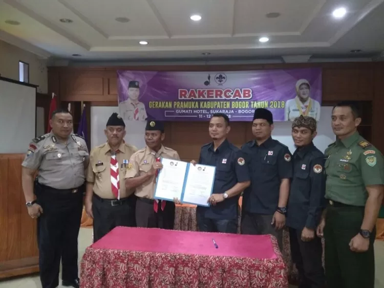 Penandatangan MoU dilakuka saat Rakercab Gerakan Pramuka Kabupaten Bogor Tahun 2018 di Hotel Gumati, Sukaraja, kemarin. MoU ditandatangani langsung Ketua Panwaslu Kabupaten Bogor Ridwan Arifin dan Ketua Kwartir Cabang Pramuka Kabupaten Bogor Didi Kurnia.