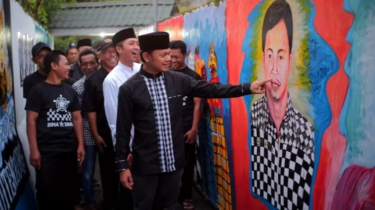 METROPOLITAN - Kehadiran Bima Arya dan Dedie Rachim di Kampung Ciburial, Baranangsiang, Bogor Timur, disambut seni mural yang menghiasi hampir seluruh tembok di wilayah tersebut. Di antara deretan gambar terselip gambar calon wali kota Bogor Bima Arya.